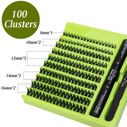 DIY-Wimpernverlängerungs-Kit inkl. 100 Stück einzelne natürliche Wimpern-Cluster mit speziellem Wimpern Klebe-Set