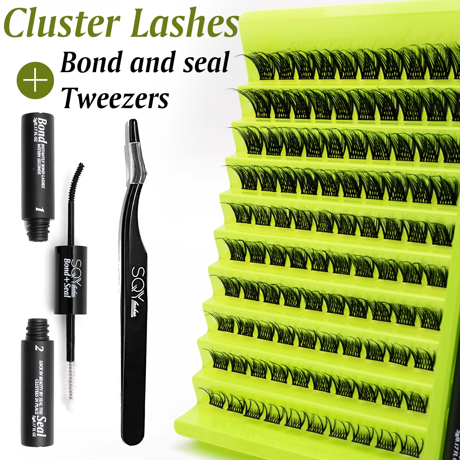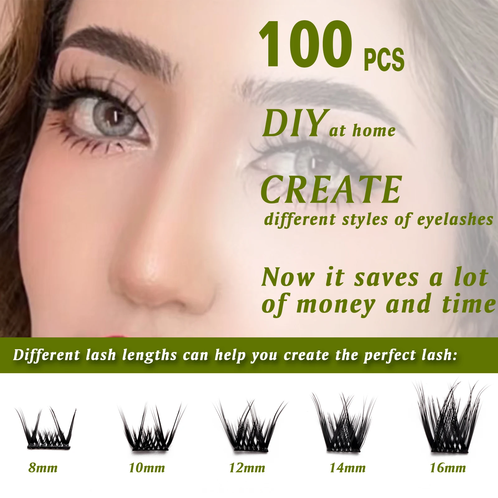 DIY-Wimpernverlängerungs-Kit inkl. 100 Stück einzelne natürliche Wimpern-Cluster mit speziellem Wimpern Klebe-Set